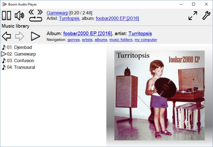 foobar2000은 어떤 종류의 번역도 지원하지 않습니다. 완벽한 다국어 지원 기능을 갖춘 가벼운 플레이어를 원하신다면 Boom을 추천합니다.