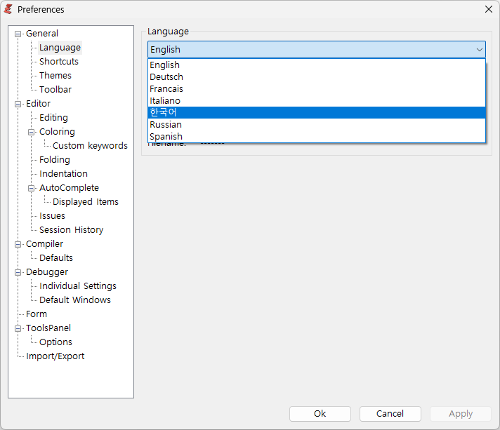 그냥 쓰려다보니 에디터 부분(IDE)만 한글화가 있어서 추가로 Compiler, Debugger, Libraries 한글화는 직접했습니다.