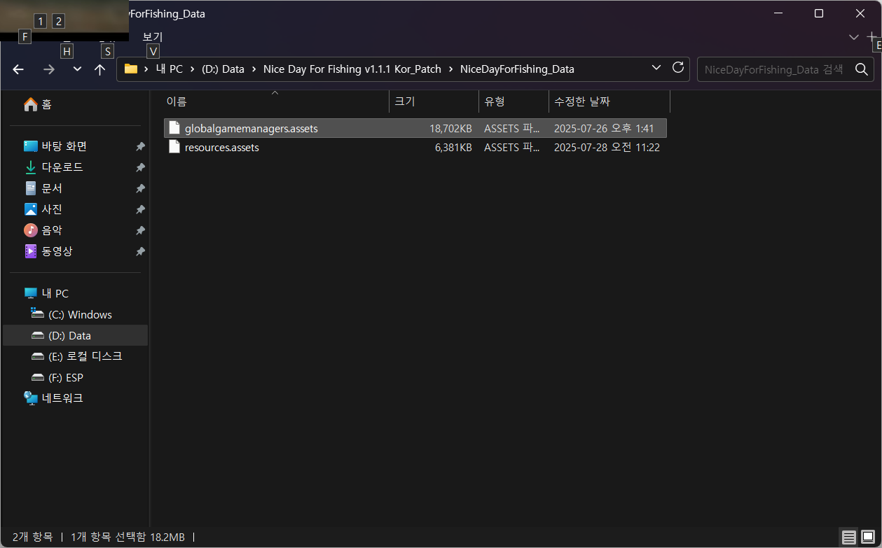 패치는 압축 풀면 나오는 NiceDayForFishing_Data폴더를 게임의 폴더에 덮어 씌어주시면 됩니다.